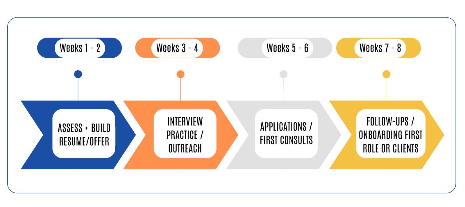 Apply, follow up, or start client outreach—with weekly check-ins.